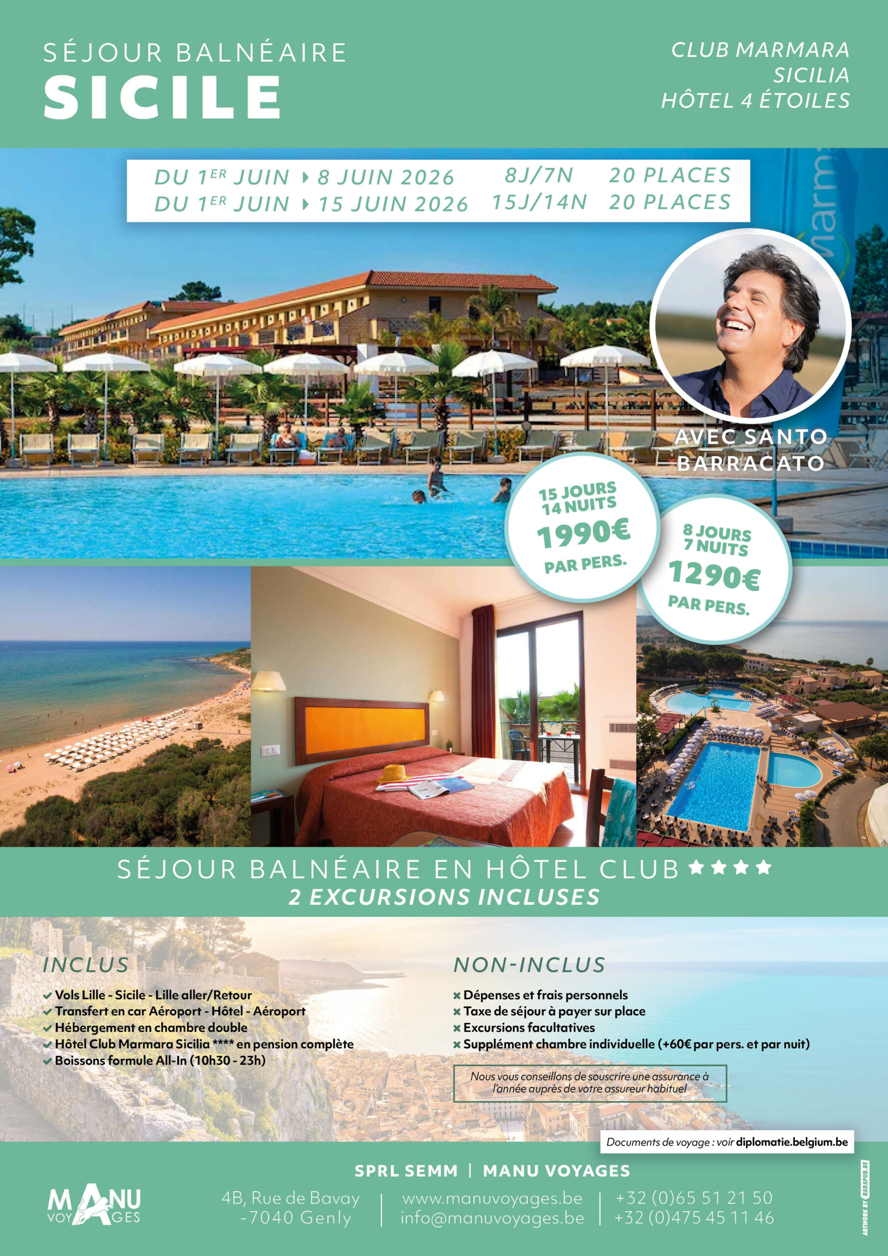 Prix TTC à partir de 1290€ OU 1990€ DU 1 AU 8 JUIN 2026 OU DU 1 AU 15 JUIN 2026 8JOURS OU 15 JOURS Télécharger le document Inscription Description Inclus VOIR FLYER Non inclus VOIR FLYER Programme SUR DEMANDE