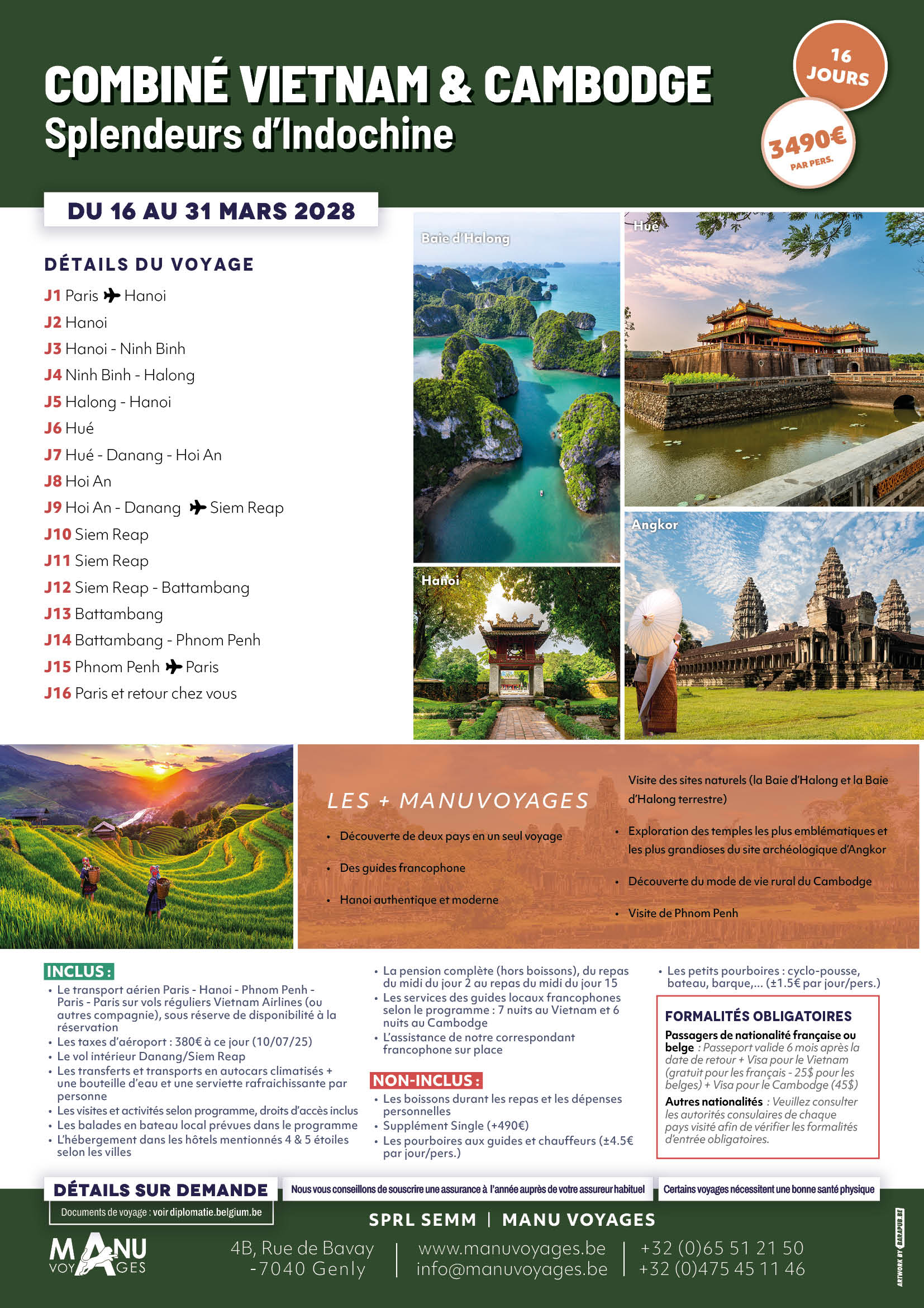 Prix TTC à partir de 1990€ DU 8 AU 18 MARS 2026 11J Télécharger le document Inscription Description Inclus VOIR FLYER Non inclus VOIR FLYER Programme SUR DEMANDE