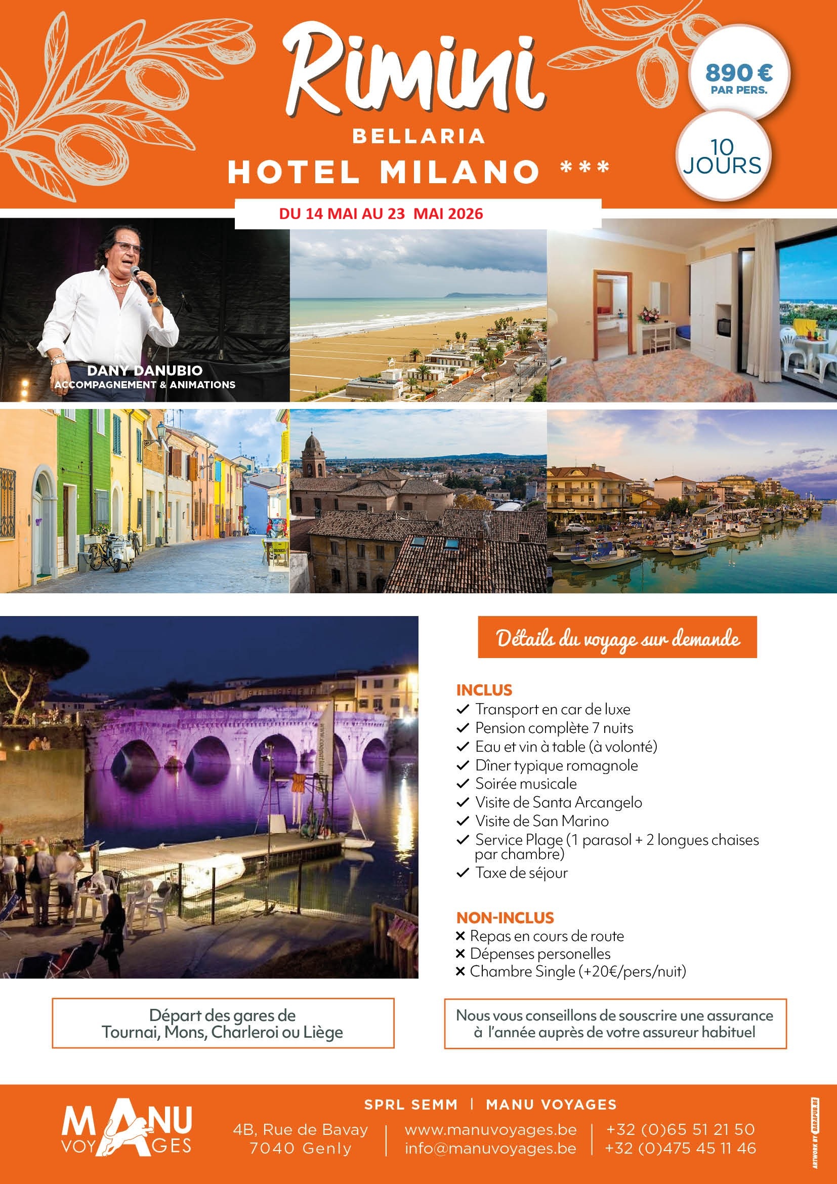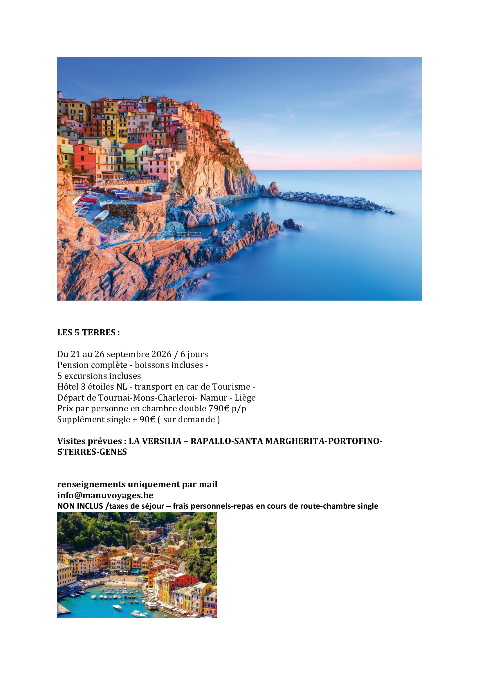 Prix TTC à partir de 790€ DU 21 AU 26 SEPTEMBRE 6JOURS Télécharger le document Inscription Inclus-TRANSPORT EN CAR– 3 NUITS EN HOTEL 3 ETOILES-PENSION COMPLETE-1/4 VIN ET EAU A TABLE-5 EXCURSIONS DEPART LE 21 EN FIN DE JOURNEE DE BELGIQUE ARRIVEE LE 22 VERS MIDI 3 NUITS D HOTELS ET VISITES LE 22/23/24/25 DEPART […]