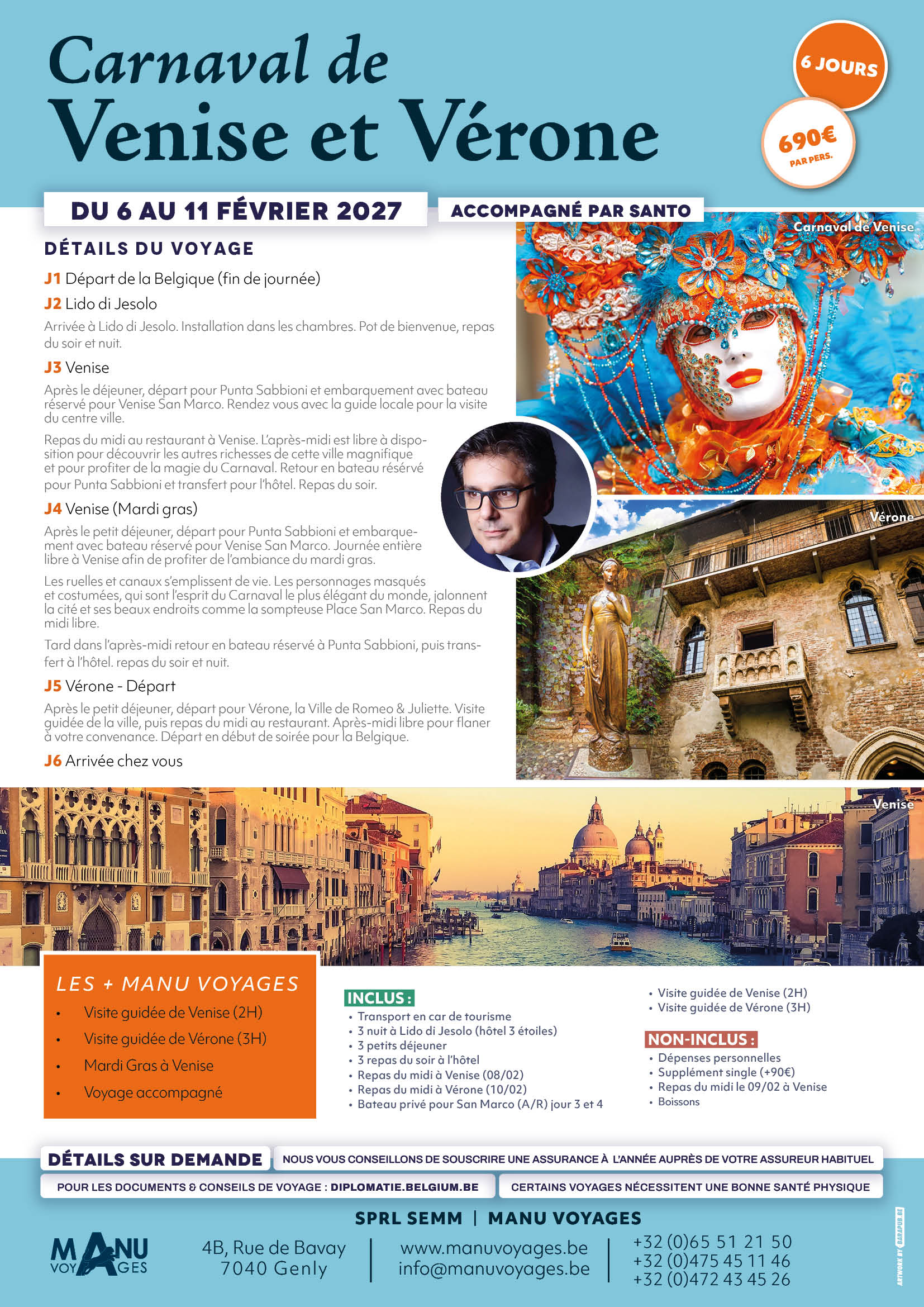 Prix TTC à partir de 690€ DU 6 AU 11 FEVRIER 2027 6JOURS Télécharger le document Inscription DEPART LE 6 FIN DE JOURNEE2 JOURS COMPLETS A VENISE DONT LE MARDI GRASDEPART LE 10 POUR VERONE LE MATIN ET DEPART DE VERONE VERS 20H POUR LE RETOUR POUR PROFITER PLEINEMENT DE LA JOURNEE CAR DE TOURISME […]