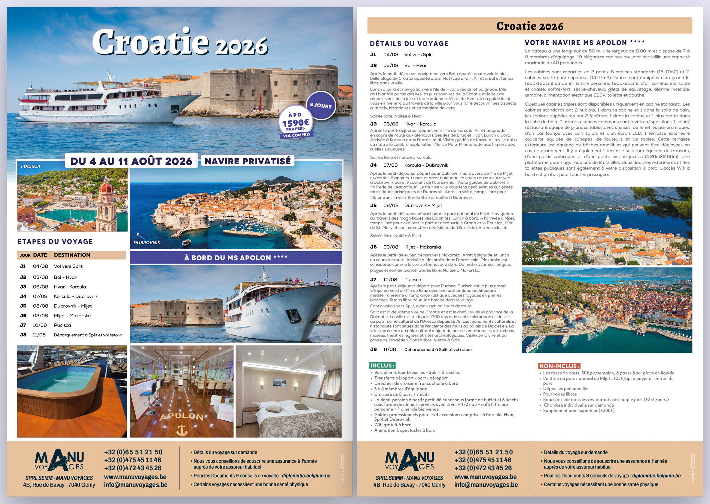 Prix TTC à partir de 1590€ DU 21 AU 29 AOUT 2027 8J/7N Télécharger le document Inscription Description Inclus VOIR PDF Non inclus VOIR PDF Programme Voir PDF